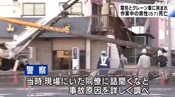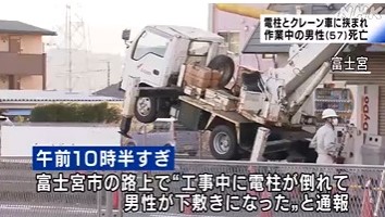 1月、富士宮市で電柱を撤去するため移動式クレーンを操縦していた男性(57)に、吊り下げた電柱が直撃し、死亡しました。