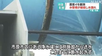 7日夜の地震のあと、千葉県市原市で川にかかる水管橋が破損して水が噴き出しましたが、管理する千葉県は8日朝、送水を止め、勢いは収まっていて、今後、復旧作業を行うことにしています。