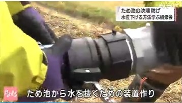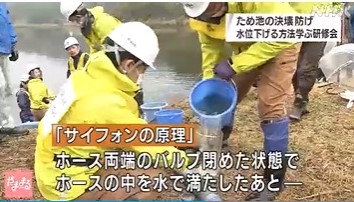 台風などの大雨でため池が決壊するのを防ぐため、ポンプを使わずに水位を下げる方法を学んでもらう研修会が山形市で開かれました。