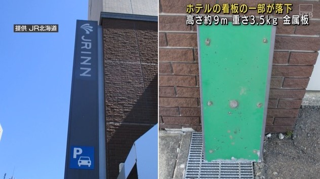 JRイン帯広を経営するJR北海道によりますと、看板は1999年に、以前この建物で営業していた別のホテルが設置したもので、ネジが腐食して外れた可能性があるということです。