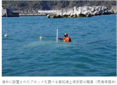 設置場所は水深約3メートルの海域で、ブロックは海中に隠れ、照明などの目印はなかった。